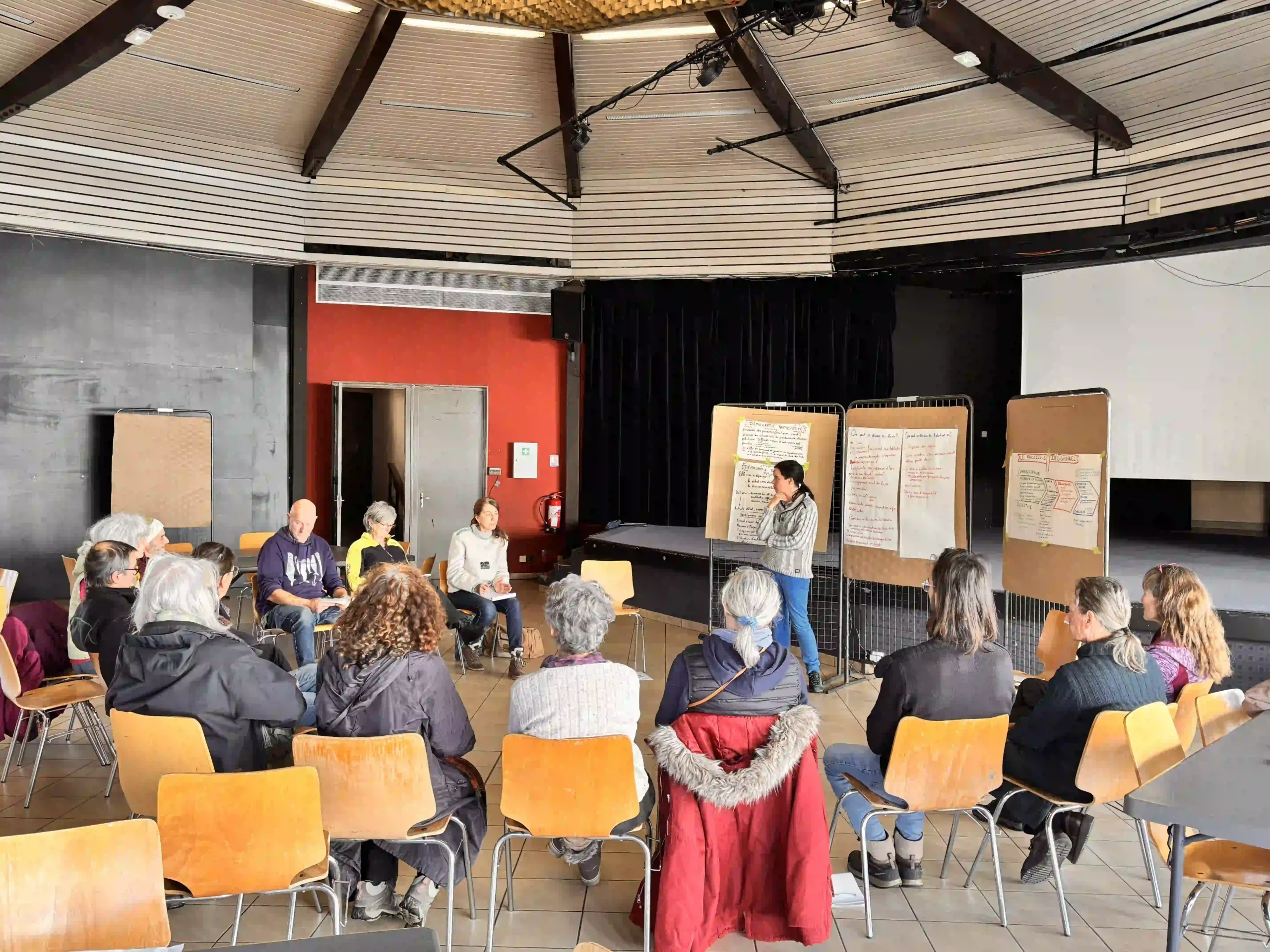Les deux premières journées d’ateliers consacrées à la démocratie locale se sont achevées à la Coupole, laissant derrière elles une énergie collective forte, des échanges denses et de nombreuses propositions concrètes. Autour de la question « Que voulons-nous pour notre démocratie locale ? », les participant·es se sont retrouvé·es pour co-construire les bases de la charte municipale ambitieuse et partagée que nous propososerons collectivement aux listes des Municipales des 4 Montagnes.